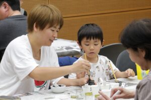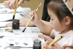 できあがった墨汁で、文字や絵を自由に書いて楽しみましょう!