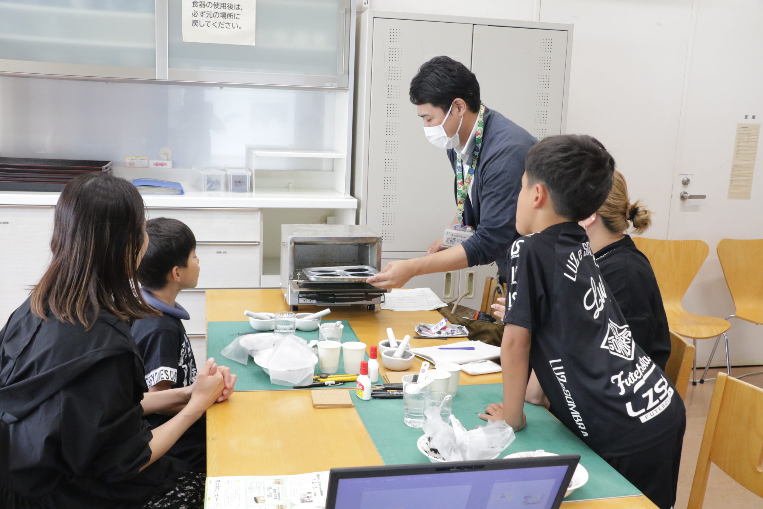 竹炭を使ってバイオマスプラスチックを作る体験をします。