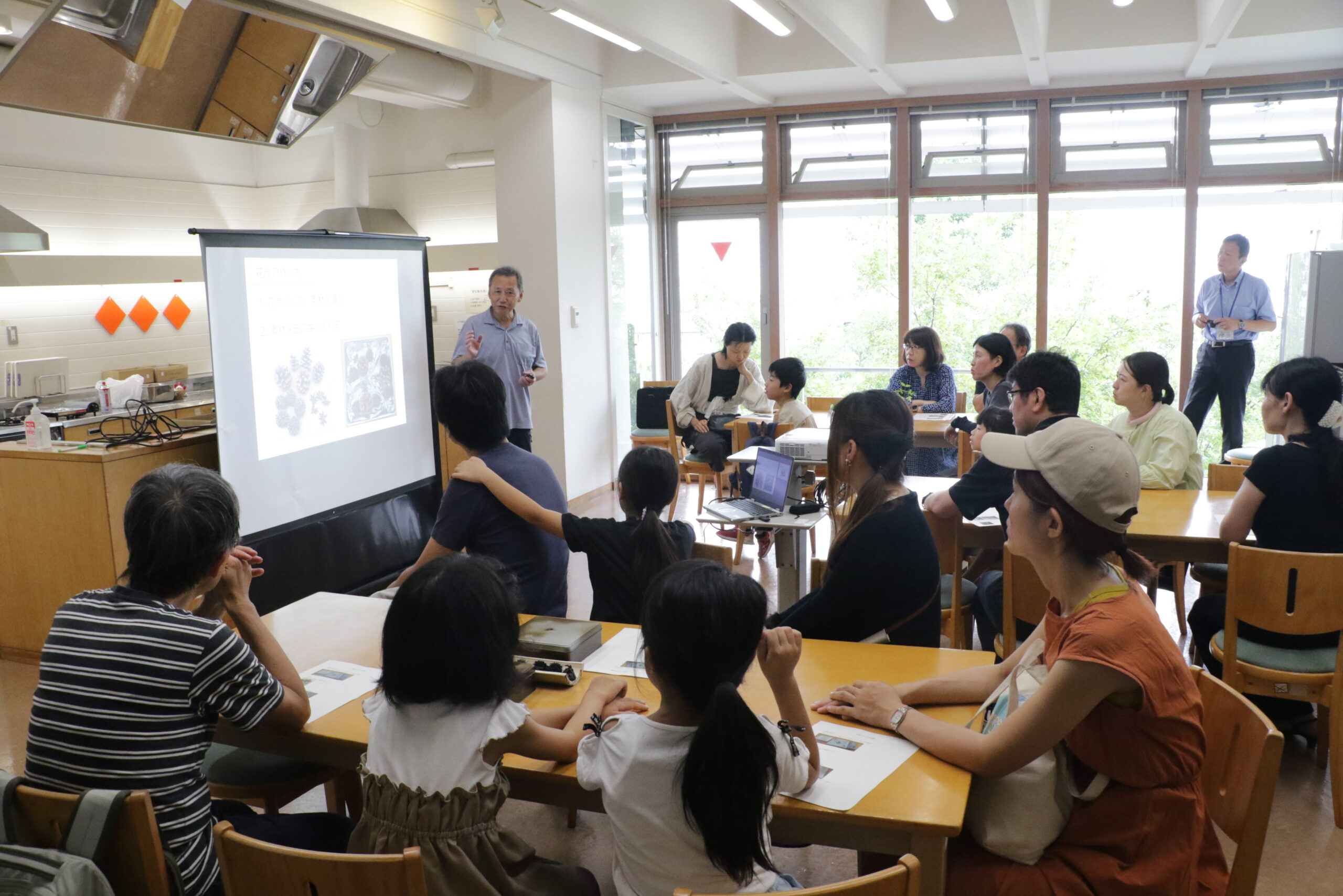 ①イベント趣旨説明の様子 ②バイオマスプラスチック作り説明の様子
